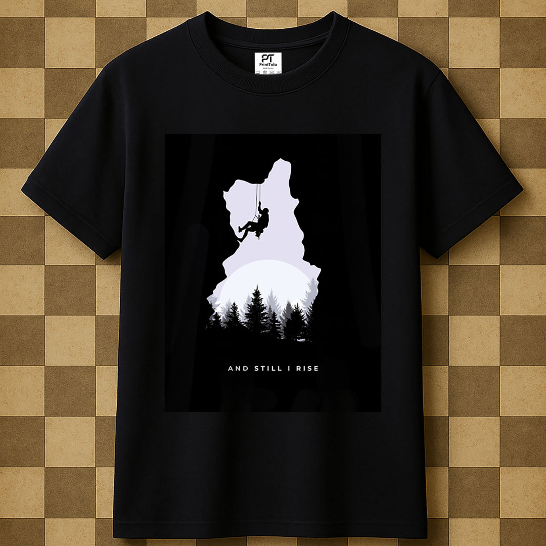 Bold, poetic, and powerful โ the And Still I Rise T-shirt captures the spirit of resilience and strength. Featuring a striking black-and-white design of a man climbing a mountain under a moonlit sky with trees in the backdrop, this tee symbolizes determination against all odds. Crafted from 100% premium cotton and biowash treated for an ultra-soft, durable, and comfortable feel, itโs made for those who keep moving forward, no matter how steep the climb.